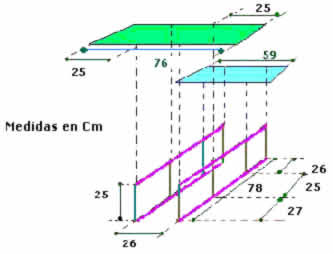 - Armar el cuerpo (4 varillas de 78 cm tipo A, y 8 varillas de 25 cm tipo B)