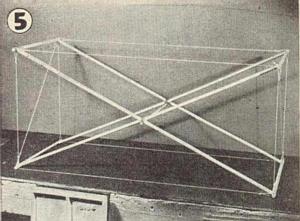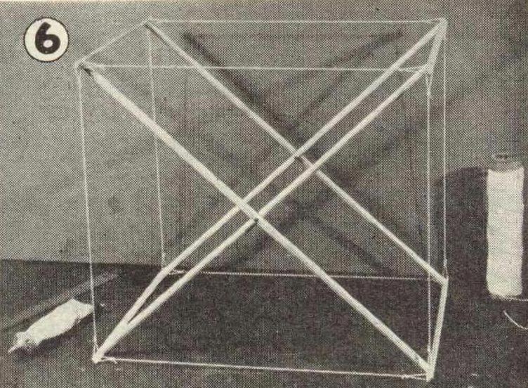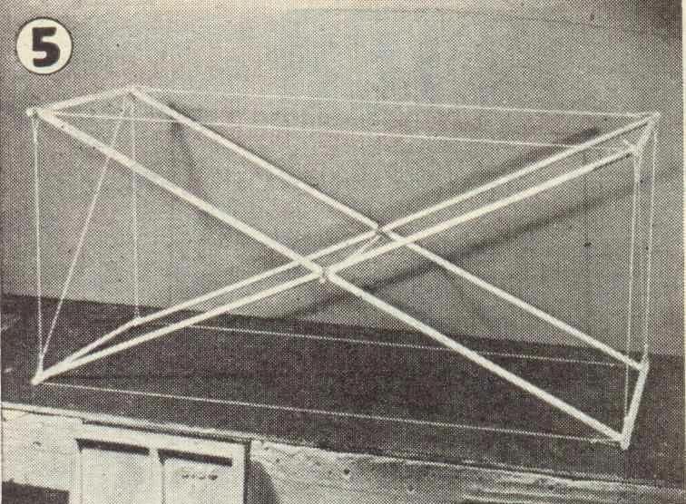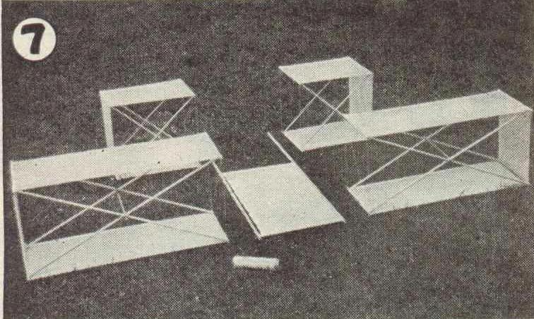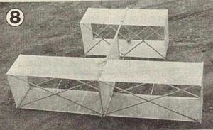 The two tail sections are assembled in the same manner as the wing sections except that there are no diagonal cords or wooden tie rods. An assembled tail-section frame is shown in Fig. 6.