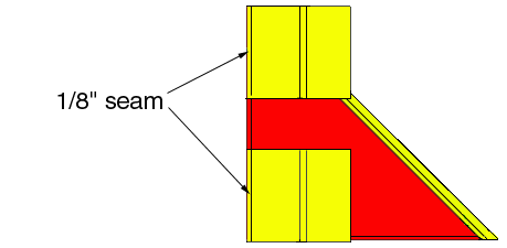 | After you sew on both leading edges and Stitched down the seam, trim the top and bottom of the leading edge flush as seen in the illustration. | |