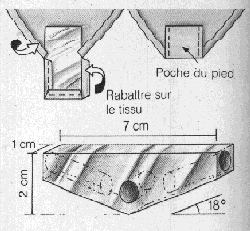 et les ourlets doivent se trouver sur l’envers de la voilure. Rabattre la poche du pied du