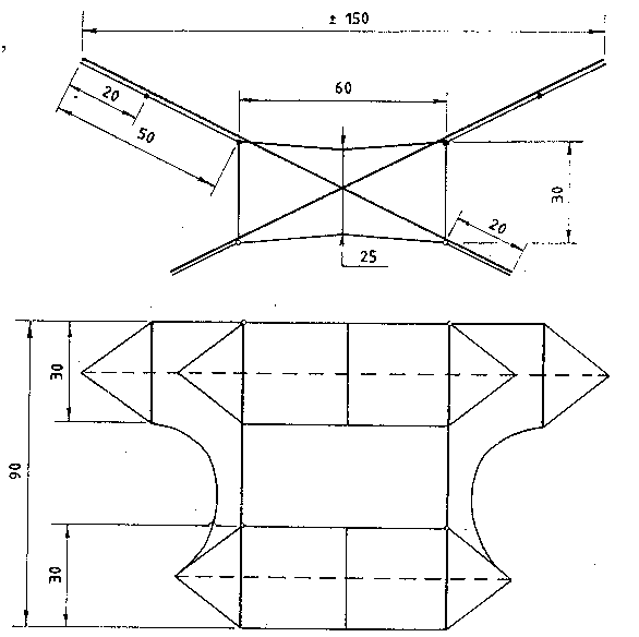 stukje over de door mij gebouwde Cody's. Na eerst een prototype te hebben gemaakt, nadat deze op papier was uitgezet naar aanleiding van een prentje van 5 x 5 cm uit het boekje "Zelf vliegers maken", werd uiteindelijk een goed model gemaakt. Deze vloog goed in een groot skala van windsnelheden, echter de drang gaat dan door. Een beetje onder druk gezet dat dan een verlengde vleugel ook zelf te bouwen is en tevens concaaf gesneden, de moed bijeen geraapt en aan de slag gegaan. Op bijgaande foto's het resultaat, schitterend vliegende Cody's. Hierbij de afmetingen van de door mij gebouwde Cody's, waarbij de zomen niet in de gegeven maten zijn inbegrepen, evenals de tunnels voor de staanders. De diameter van de ramin stokken in de grote Cody's zijn Ø 9 mm en in de vleugels Ø 7 mm. Zelf even opletten voor de nodige verstevigingen bij de stokdoorvoer en in het tussenschot. De mensen die gaan bouwen wens ik veel genoeglijke bouwuren en veel plezier bij het vliegen ervan. Vooral de "kik" als een eigen gereed produkt de lucht in gaat (figuurlijk) is groots. Foutje, bedankt