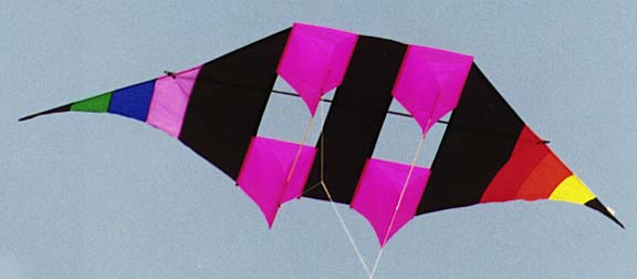 eines Conyne-Drachens mit deltaartigen Flügeln verbunden wird. Wer diese Drachenform zuerst entwickelt hat, ist mir derzeitig nicht bekannt. Dieser Drachen ist daher ein hervorragender Leichtwindflieger, der auch etwas kräftigen Wind aushalten kann. Die Deltaform bzw. das Verhältnis Spannweite-Länge (aspect ratio) kann in weiten Bereichen verändert