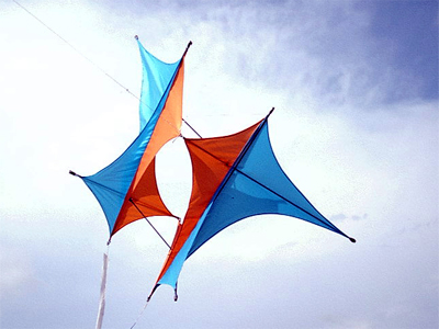 La Dondai es una cometa de fácil construcción y muy vistosa. Tiene la peculariedad de que puede volar en ambos sentidos. Hay que tener la precaución de que cuando se cose por su eje longitudinal, no nos extralimitemos de la marca, ya que se producen posteriormente muchas arrugas. También recomiendo que los orificios que se le practican en la parte posterior para insertar la varilla transversal, se marquen en el momento del montaje previo, para ajustar la altura del agujero al máximo, teniendo en cuenta que los ángulos formados entre las dos semialas son aproximadamente de 120º