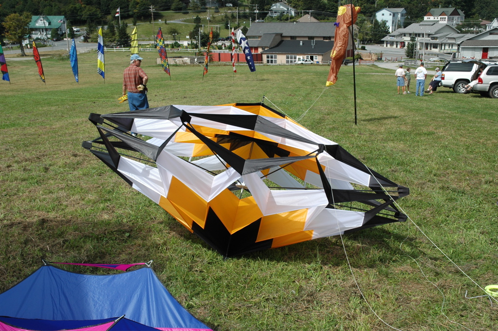 We will sew front and back of the kite.Front and are back of the kite are same. You need 10xPanel A, 20xPanel B, 20xPanel C and 20xPanel D for each side. You must sew reinforcement two of the Panel A for each side of the kite. When sewing center these panel will be other side of each other. Sew the edges of the panels. Double fold the EDGES and sew. Sew the Panel A's(Center of the Panels) to each other shown in PICTURE. Sewing Panel A -> Panel B. Sewing Panel B -> Panel C. Sewing Panel C -> Panel D. Sewing Panel D -> Panel D. SEWING POCKECTS AND CENTER LINE Now sew pockets for spars and connect to front and back side. Sorry about the sewing quality :(I used 5x10cm dacron. Because I forget the end caps of the spars, spars pierce some of the pockets so I sew a second layer of dacron which you can see in the PHOTO. For Center sew a line. Each end of the line will sew the darcon reinforcements on PANEL As. Do for back and front side. When I making my kite I made a mistake on the center. I sew wrong. So your center will be different. PHOTO of my kite's center front. BRIDLE The kite has a sipmle 3 point BRIDLE. SPARS The Center spar will be 150 cm and attach a nock eack side of the kite. The other spars will be shorter then 150 cm. Because you will use a Center HUB/Tinker toy the size of the spars will be different then my spars. You must calculate it or you must try the correct length. 8 POINT 2M DOUBLESTAR Here is an PDF file of the 8 Point Doublestar Panels. Sorry I put only in centimeters. But the PDF Document is in A0 Papersize. If you able to print in A0 size then you will have the original size panels. For a strong kite I recommend to use 8 mm carbon tube. But my friend have one with 6 mm spar. It can flight in very low winds. But I don't know the upper wind limit. This is my first detailed kite plan. Please tell me any information which is missing above. DOUBLESTARs made with this plan Please send me your Doublestar's pictures.