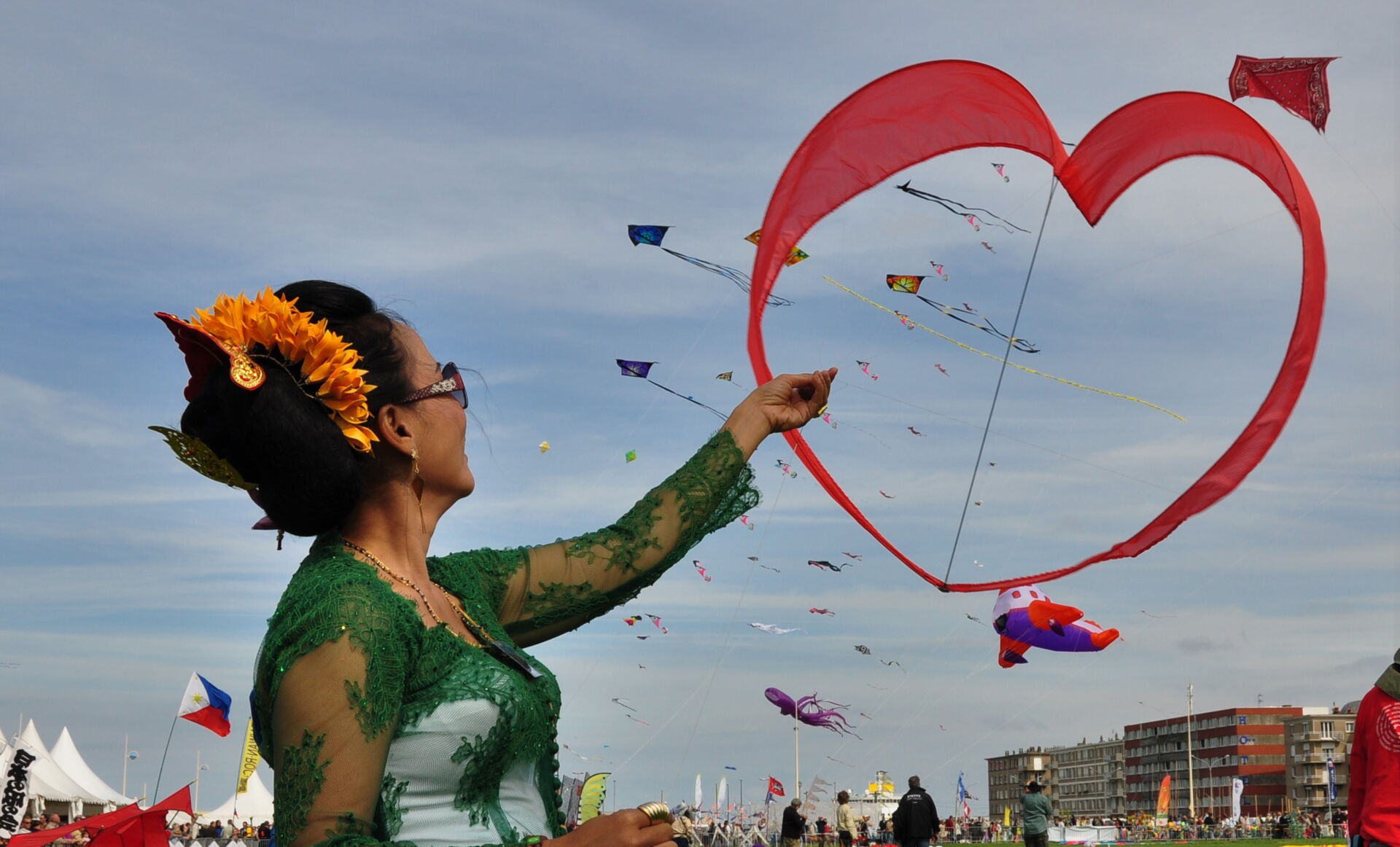 The first time I saw a heart shaped kite was 2010 at the Festival in Dieppe France. A lady flew (or hold) a kite which I never saw before. Of course - that's not difficult in Dieppe - if you would like to be inspired, that's one of your places.