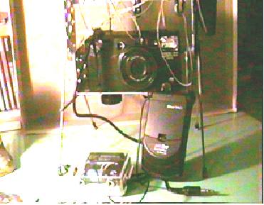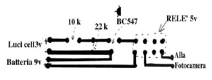 In fig. 2 una delle prime fotografie realizzate con questo sistema. Si nota chiaramente che è mossa. Purtroppo la fotocamera non era predisposta per la lettura ASA. Si nota anche il cavo che tiene l'aquilone ed accanto la sua ombra. Con il Kaptimer le foto erano discrete ma il risultato non mi soddisfaceva. (Anche perche' ogni volta per ricaricare il timer bisognava far scendere la culla con la fotocamenra. NdWM.). Uno dei miei tanti hobbies e' quello di collezionare cellulari di qualsiasi tipo ed ho pensato quando il cellulare squilla si attiva sia il vibracall che la suoneria, quindi avrebbe potuto attivare un rele’ che, a sua volta, avrebbe potuto chiudere un circuito come quello della macchina fotografica! L’intuizione era giusta, solo che la funzionalità del circuito, illustrato più avanti, non viene attivato dalla suoneria o dal motorino del vibracall, ma dalle piccole lucette che si illuminano ogni volta che si fa squillare il cellulare. Componenti per