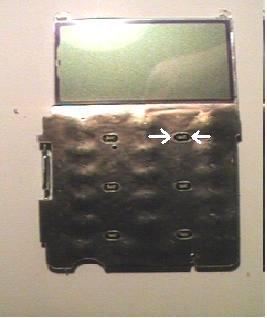 In fig.6 il cellulare aperto posteriormente. In figura 7 il flat da scollegare usando la levetta marrone.Nella fig n.8 il flat e stato scollegato, per dare la possibilità di dividere il circuito dallo sportello e accedere al display. In fig.9 il display: le due frecce bianche indicano i punti di saldatura. Per la macchina fotografica Qui dipende se la vostra macchina e nuova o è