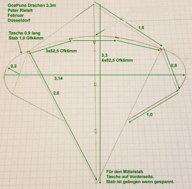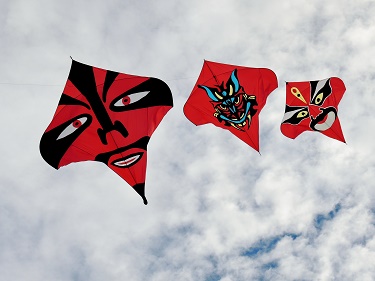 Es sollte wieder einmal ein einfach zu bauender Drachen für einen grossen Windbereich sein. Peter Rieleit hatte schon mehrer Kikis gebaut, die mit ziemlich guten Flugeigenschaften aufvielen. Als gemeinsammes Motiv wurden Masken gewählt. So konnte jeder Mitglied seine eigenen Idee auf dem vorgegebenen roten Drachen ausführen.