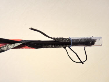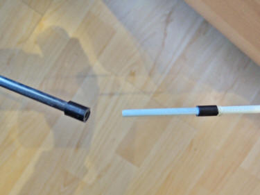 Übergang 6mm Kohlefaser-Rohr auf 4mm Glasfaser gewickelt.