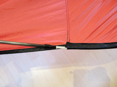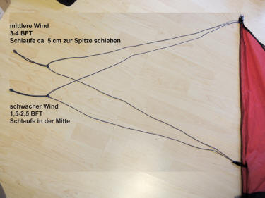 werden Oben und Unten an den Segelenden mit Gurtband und Schläuchen