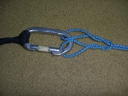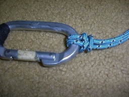 Glen Pedro of Woodbridge, NJ, USA taught me this knot. It is a great way to belay a flying line to a carabiner. At the end of the flight, this knot is easy to open up and slide off the 'biner, and then it just falls apart.