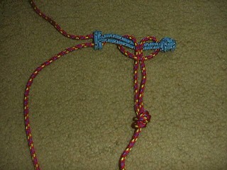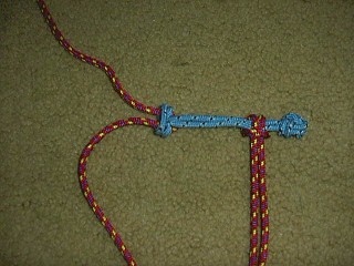 Below, a Lark's Head attached to a Knotted Loop on a bridle.