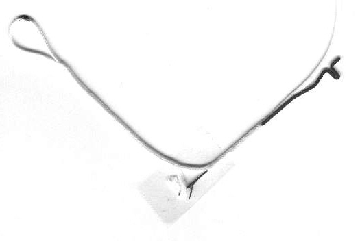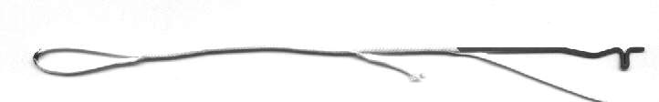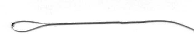 The No-Knot was originally trademarked by Rainbow Stunt Kites. In the mid-1980's, the 'high tech no stretch' flying line for stunt kites was Kevlar. Kevlar is very abrasive and will eat right thru itself if tied in a knot. Sleeving and splicing were essential skills to early stunt kite flyers. The No-Knot kit from Rainbow included a latch hook 'beading' needle, and a length of sleeving. Once the loop was fixed, a length of sleeving was pulled over the line where the loop would cross to prevent chafing. The needle involved is easily obtainable in shops that sell & service knitting machines. They are available in a variety of sizes. This is a beading needle size.