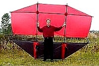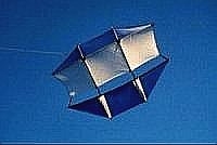 Der Maxi-Dopero ist ein vielgenutzter Traegerdrachen fuer KAP-Zwecke auf der ganzen Welt. Um auch schwerere Anlagen in etrem leichten Winden noch liften zu koennen, wurde der Maxi-Dopero auch schon auf 12 m² Flaeche vergroessert. Henry Jebe aus Alaska hat aber einen noch groesseren Grizzly-Dopero gebaut |