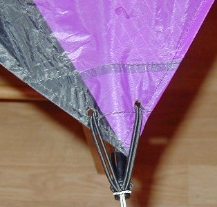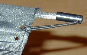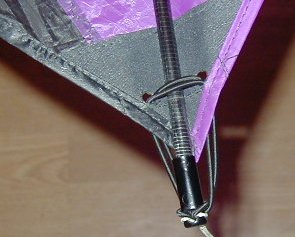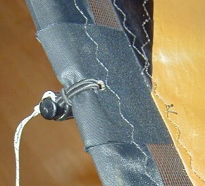 The bungee is larksheaded to the cap's triangular hole. It's a little