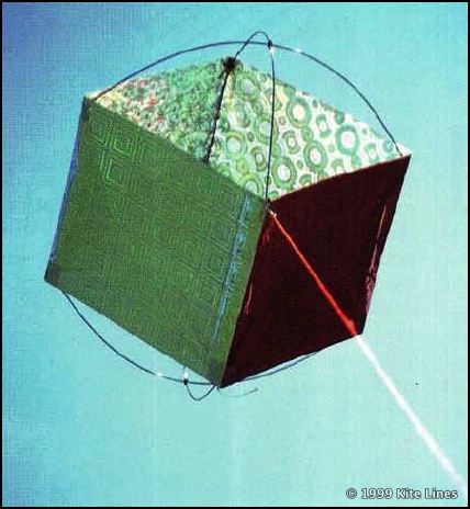 The kite “took off” commercially in 1998, after the Shanti Kite Company negotiated with Martin for rights to make her box. The single-cell market niche now also includes the Triad and the PopKan. (See our reviews of the Cube and Triad in Kite Lines, Spring 1999, and of the PopKan in this issue.)