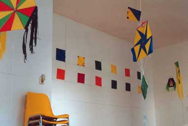 | Tail. For this type of kite a tail of circa 7-8 meter is really necessary to create stability and to stage the actual kite fight. In Surinam the tail is the most precious part of the kite. It is made by tearing long pieces from a bed sheet, initially 4 cm wide and tapering gradually to 1 cm. |
