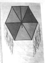 | Whiskers. The whiskers at the sides of the kite are decorative and helpful for increasing overall stability. Originally made of paper, but here rip-stop nylon (for durability) that was cut with a soldering iron. |