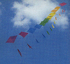 The length of the tails is suggested in each kite design in Section Two. Experimentation is required to match the length of the tails to your prevailing wind conditions and the artistic look you want for your train.