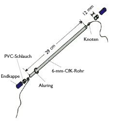 Drachens. Das 29 cm lange CFK-Rohr, an dem der Aluring mit der